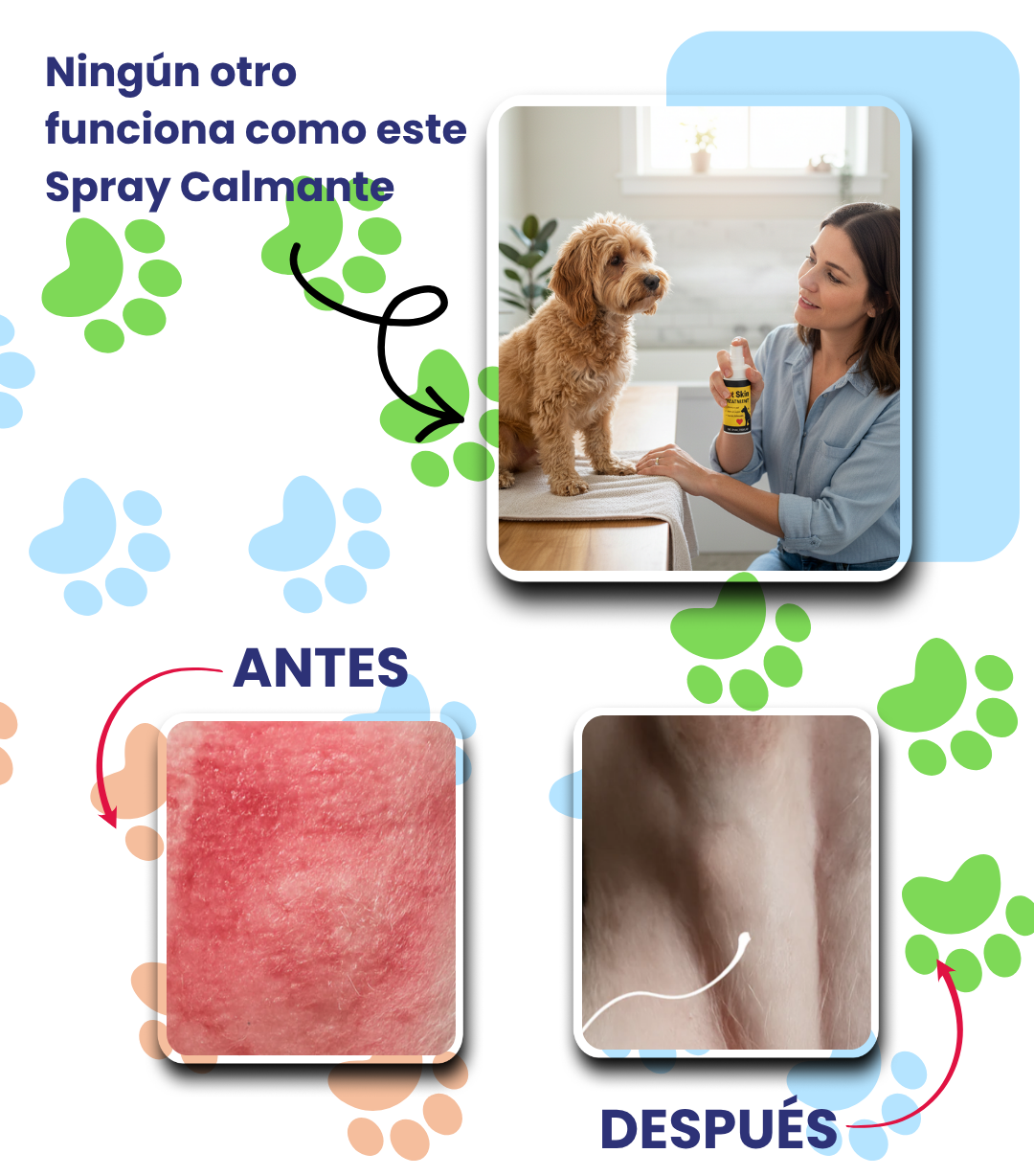 Es un spray regenerador formulado para aliviar la picazón, combatir hongos y bacterias, y acelerar la recuperación de la piel en mascotas. Ideal para perros y gatos con irritaciones, alergias, enrojecimiento, caspa o heridas superficiales. Su fórmula natural y segura calma la piel desde la primera aplicación, sin dejar residuos ni causar efectos secundarios.